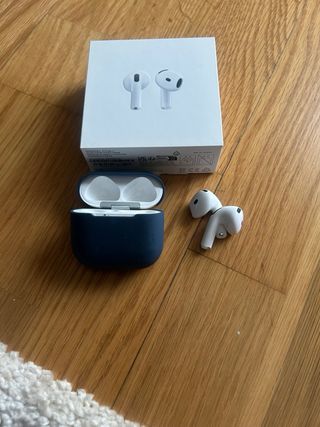 Auriculares inalámbricos Apple Airpods 4. - Incluye funda protectora de color azul marino. - Estuche de carga blanco. - Originales - Aun en garantia - Funcionan perfectamente - Se entrega factura
