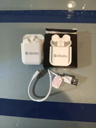 Auriculares inalámbricos iWotto en color blanco. - Versión inalámbrica: 5.0 - Distancia de transmisión: 10 metros - Impedancia: 32Ω±15% - Sensibilidad: 98±5dB a 1KHz, 6mW - Capacidad de la batería de la caja de carga: 200 mAh - Capacidad de la batería de los auriculares: 30 mAh - Duración: 3 horas