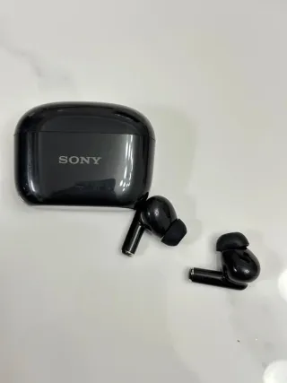 Auriculares inalámbricos Sony en acabado negro brillante. Incluyen su estuche de carga. - Diseño elegante y moderno. - Compactos y fáciles de transportar. - sonido eficiente