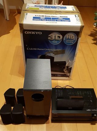🎬 Sistema Home Cinema ONKYO 5.1 – Sonido envolvente HD Sistema de cine en casa ONKYO 5.1, ideal para disfrutar de películas, series, conciertos y videojuegos en familia, con sonido potente y envolvente. Incluye receptor AV, subwoofer y 5 altavoces. Compatible con HDMI, Dolby, DTS-HD y 3D Ready. Muy buena calidad de sonido, especialmente en diálogos y graves. ✨ Estado perfecto: todo funciona correctamente y se entrega completo, con su caja original y protecciones. Un equipo robusto y fiable, perfecto para montar un auténtico cine en casa sin complicaciones. Se vende debido a mudanza.