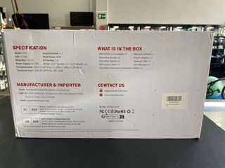 REF: 60500 Barra de sonido Mevosto D7H, ideal para mejorar la experiencia de audio en casa.No incluye subwoofer. ARTÍCULO A ESTRENAR - Diseño elegante y compacto. - Sonido envolvente para cine en casa. ARC/CABLE ÓPTICO/BT 5.0/AUX Realizamos envíos combinados. 1 AÑO DE GARANTÍA Somos Acerto Segunda mano, tienda de compra-venta y empeños, situada en C/ Santiago de Compostela 20, Roquetas de Mar, Almería. Hacemos envíos en península, Baleares y la mayor parte de Europa. Los artículos reflejados en este anuncio tienen el IVA incluido y está acogido al régimen especial de bienes usados.
