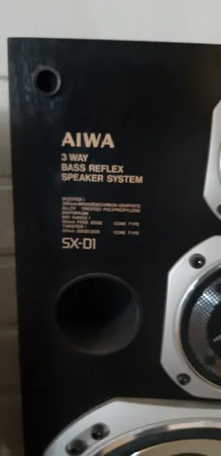 Altavoces Aiwa SX-D1 de 3 vías. - Sistema Bass Reflex. - Diseño de 3 vías.