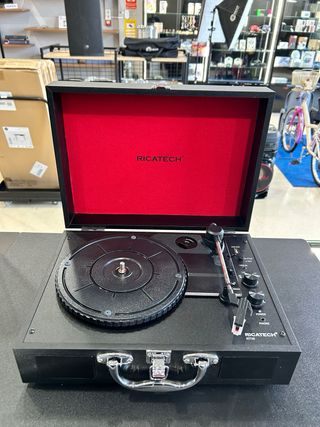 REF: 61904 Tocadiscos ricatech con bluetooth portátil con un diseño retro y elegante. Todas las características en la ultima foto. Artículo en muy buen estado. Realizamos envíos combinados. 1 AÑO DE GARANTÍA Somos Acerto Segunda mano, tienda de compra-venta y empeños, situada en C/ Santiago de Compostela 20, Roquetas de Mar, Almería. Hacemos envíos en península, Baleares y la mayor parte de Europa. Los artículos reflejados en este anuncio tienen el IVA incluido y está acogido al régimen especial de bienes usados.