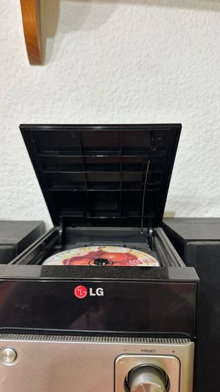 Sistema de sonido LG con un diseño moderno y elegante. - Acabado en plata y negro. - Incluye altavoces. - Puerto USB y entrada auxiliar -Reproductor de CD y radio