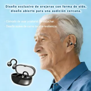 Auriculares inalámbricos con diseño de clip para la oreja. Incluyen un estuche de carga. - Diseño ergonómico con clip. - Acabado en negro y plateado. Nuevos Auriculares con Clip de oído, reducción de Ruido para Adultos Mayores: amplifica el Sonido Original para ayudarlo a Escuchar Voces claras y más cómodo sin el oído Marca: LANSOUND