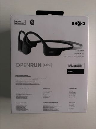 Auriculares Shokz Openrun Mini en color negro. - Tecnología de conducción ósea. - Diseño ligero y ergonómico. - Garantía de 2 años.