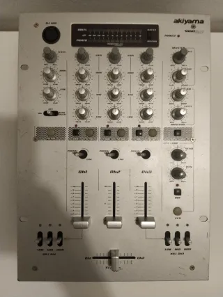 Mesa de mezclas Akiyama VCA 3.0. NO FUNCIONA - Diseño plateado y negro. - Controles de nivel, ganancia y ecualización (High, Mid, Low). - Entradas Phono/Line. - Crossfader y faders de canal.