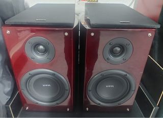 Par de altabocesde la marca Vieta en acabado brillante. Cajas acusticas de diseño - Diseño elegante en color rojo y negro. - Dos vías con woofer y tweeter. Bafles de 100w Elegantes de estanteria