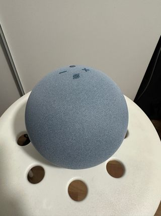 Altavoz inteligente Alexa Echo de cuarta generación en color azul. En perfecto estado y funcionamiento. Lo vendo porque lo usaba como altavoz de mi pc pero me he comprado unos nuevos. - Conector jack para poderlo usar como altavoz. - Botones de control en la parte superior. - Indicador de luz LED. No tengo la caja.