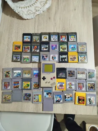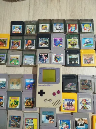 Lote de consolas y juegos para Game Boy. - Incluye 1 consola Game Boy. - 22 cartuchos de juegos originales. - 26 cartuchos de juegos adicionales. - la consola todos los botones bien el sonido bien y la pantalla perfecta hasta que se quedó unas horas al sol y se le perdió lo pixels. Funciona por todo lo demás perfecto. Se me quedó al sol y perdí la pantalla