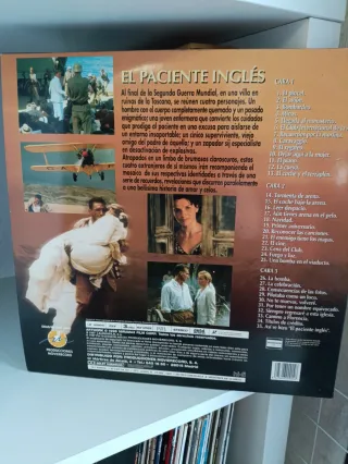 Película El Paciente Inglés en formato Laserdisc. Ganadora de 9 premios Oscar. - Incluye El Paciente Inglés en Laserdisc. - Película galardonada con 9 Oscars. - Incluye listado de premios Globo de Oro y BAFTA. - Distribuido por Producciones Movierecord. - Formato Widescreen. - Sonido Dolby Surround.