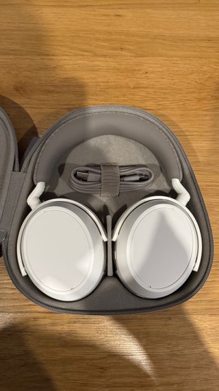 Auriculares de diadema Sennheiser Momentum 4 en color blanco + gris marrón. Solo usados una vez. Comprados en julio de 2025. Se venden por no usar. Se incluye estuche y los cables que venían con los cascos (están sin usar). No tengo la caja (no sé dónde está). Precio no negociable.