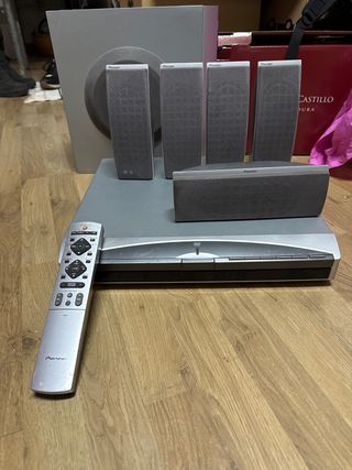 Sistema de sonido Pioneer para casa, ideal para mejorar tu experiencia audiovisual. - Altavoces frontales - Altavoz central - Subwoofer - Mando a distancia