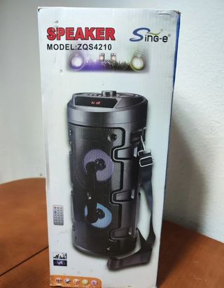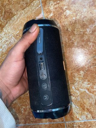 Altavoz de la marca Energy Sistem en color negro. - Diseño rectangular. - Acabado en tela. El altavoz tiene unos meses de uso y se escucha muy bien, los bajos muy buenos y muy buena calidad en general.