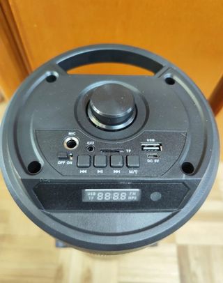 Características: - Potencia de salida (RMS): 12 W - Fuente de alimentación: batería recargable - Duración de la batería: 4 horas - Tiempo de carga: 2 horas - Versión Bluetooth: 5.0 - Alcance inalámbrico: 10 m - Transmisión inalámbrica de música a través de Bluetooth - Ranura para tarjeta SD y Pendrive USB - Salida para micrófono