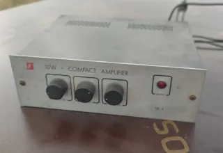 Amplificador compacto de 10W. - Modelo SK 4. - Diseño plateado y negro. - Incluye control de volumen y selector.