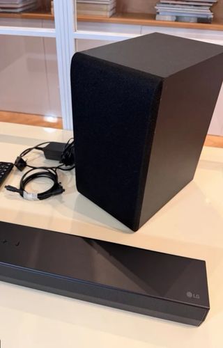 Barra de sonido LG S40T en color negro. Incluye subwoofer y mando a distancia. Usado en buen estado. - Subwoofer inalámbrico. - Mando a distancia incluido. - Conexión HDMI ARC.