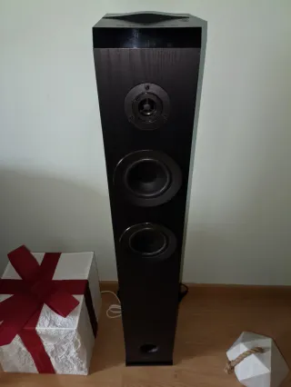 Vendo Sonus Faber Sonetto III Columna de muy altas prestaciones y excelente relación calidad/precio. Sistema bass-reflex de 3 vías y 4 altavoces con puerto inferior. Tweeter con tecnología DAD, medios de fibras naturales y dos woofers de aluminio. Recinto en forma de laúd con filtro Paracross exclusivo. Respuesta en frecuencia: 42–25.000 Hz Sensibilidad: 89 dB/W/m Impedancia: 4 Ω Potencia recomendada: 50–250 W RMS Dimensiones: 219 x 1.018 x 305 mm Peso: 16 kg Acabado nogal