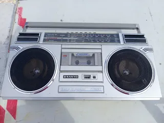 Radio grabadora Sanyo de estilo retro, un clásico para los amantes de la música. - Diseño compacto y portátil. - Altavoces estéreo integrados. - Compartimento para cassette.