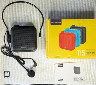 Amplificador portátil Aporo T15. - Incluye micrófono con diadema. - Manual de usuario. - Diseño compacto.