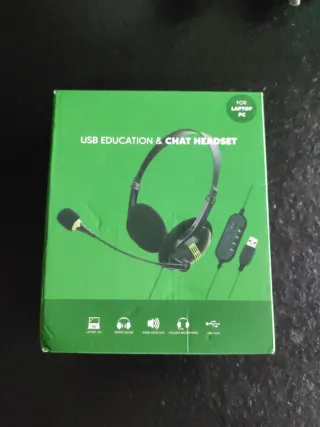 Auriculares con micrófono diseñados para educación y chat. - Conexión USB. - Sonido estéreo. - Unidad de voz de 40 mm. - Micrófono plegable.