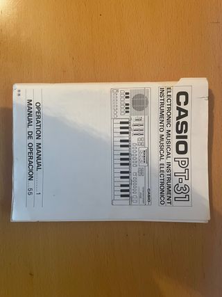 Manual de operación para el instrumento musical electrónico Casio PT-31. - Incluye manual en español e inglés. - Cubre hasta la página 55.