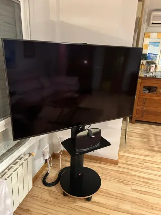 Soporte de suelo para televisores de pantalla plana, con ruedas para facilitar su movilidad.LA MARCA DEL PRODUCTO NO ME ACUERDO Y E PUESTO UNA CUALQUIERA,pero está casi nueva - Diseñado para televisores de 50 a 65 pulgadas. - Base estable con ruedas. - Altura ajustable.PRECIO NEGOCIABLE
