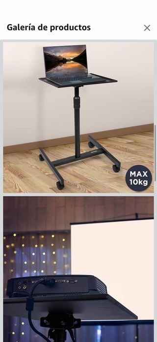 Mesa para proyector o portátil con ruedas, ideal para presentaciones o uso doméstico. Nuevo sin abrir la caja original (se me paso el plazo de devolucion y al final puse el mio colgado) - Altura ajustable. - Bandeja inclinable. - Base estable con ruedas para fácil movilidad. - Soporta hasta 10kg.