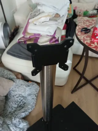 Soporte de TV de pie profesional – Alta calidad – Estado seminuevo Se vende soporte de televisión de pie de alta calidad, con estructura metálica robusta y diseño profesional. El soporte se encuentra en estado seminuevo, ya que ha tenido muy poco uso. Dispone de doble columna ajustable en altura, lo que permite adaptar la posición del televisor con gran estabilidad. Incluye bandeja intermedia ideal para colocar consola, reproductor, router o dispositivos multimedia. Este tipo de soporte es muy utilizado tanto en hogares como en oficinas, presentaciones o salas multimedia debido a su gran estabilidad y durabilidad. Característica