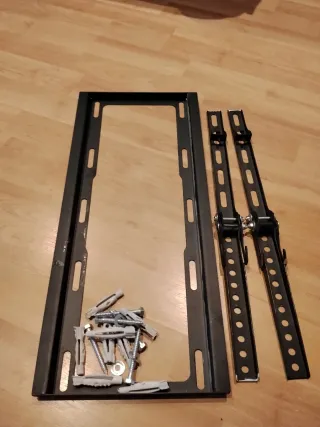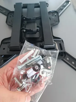 Soporte de pared para televisión de color negro.para 32"regulable con nivel. recoger en carretera de cadiz frente a wolvagen.Gracias - Compatible con pantallas de hasta 32 pulgadas. - Incluye brazo articulado y placa VESA. - Se adjunta kit de tornillería.