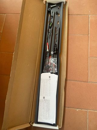 Soporte de pared Hama diseñado para televisores de grandes dimensiones. Fabricado en metal negro, este soporte ofrece un diseño robusto y funcional. Funciona a la perfección y tiene todos sus componentes, lo quitamos porque hemos reformado el salón y puesto la TV apoyada en un mueble, nuevo costó 120€ - Color: Negro - Material: Metal - Tipo: Soporte de pared para TV