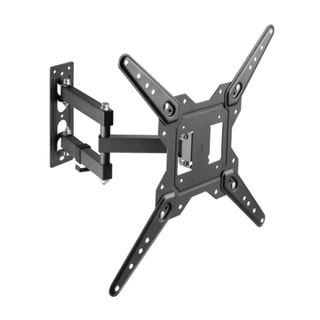 Soporte de pared negro para televisión, Vesa 75x75 y 100x100mm. Con brazos articulados y base giratoria (rotación de entre -180° y + 180°). inclinación de +/- 10°, giro de +/- 90° y rotación de 360°. Extanción hasta 382mm desde la pared y se retrae a 50mm. Brazos articulados para ajustar la posición. Base giratoria para mayor versatilidad. Incluye tornillería M4x12mm. Para TV o monitor de 13 hasta 30 pulgadas, maximo 15 kg