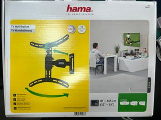 Soporte de televisión de la marca Hamma para televisiones de 32'' hasta 65'' y peso máximo de 35kg. No incluye tornillería ni de pared ni para la TV. El soporte es de calidad, pesado y con brazo extensible. Modelo Wall Braket.