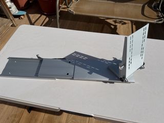 Soporte de pared para TV, ideal para autocaravanas o caravanas. Su diseño permite plegarlo cuando no está en uso. - Color gris claro. - Fabricado en metal. - Orificios para ventilación. Se monta fácilmente, lo vendo porque yo no lo uso en mi autocaravana etrusko, está nuevo, nunca lo he usado. se pliega y se queda dentro del armario del techo.