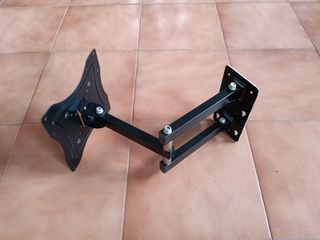 Soporte de pared para televisor, color negro. Es un artículo usado, pero está en buenas condiciones. d - Ideal para colocar tu televisor en la pared. - Fabricado en metal resistente. - Diseño elegante y discreto. Distancia entre tornillos: 10x10cm 20x15cm en funcion de si la tele es pequeña o grande