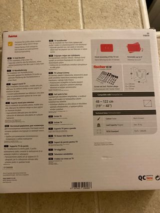 Soporte de pared para TV Hama. - Perfil plano. - Incluye material de montaje con tacos Fischer.