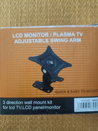 Soporte de pared para TV o monitor, VESA 100x100 y menos, ver fotos. Resistente, con pestillo de seguro, gira en todos los sentidos.