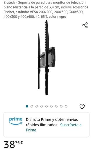 No lo he llegado a usar porque he perdido el ticket y no vale para mi TV. Soporte de pared universal para televisores OLED, QLED y LED. - Diseñado para televisores de 19 a 43 pulgadas (48-109 cm). - Permite un giro de 90° y una inclinación de 30°. - Distancia a la pared ajustable de 49 a 186 mm. - Soporta un peso máximo de 30 kg (66 LBS). - Compatible con VESA hasta 200 x 200 mm. - Incluye 10 años de garantía.