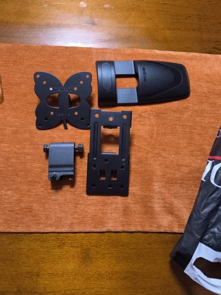 Soporte de pared para TV, ideal para pantallas planas. Se encuentra en buen estado. - Permite una inclinación flexible. - Fácil instalación. - Material resistente y duradero. - Color negro.