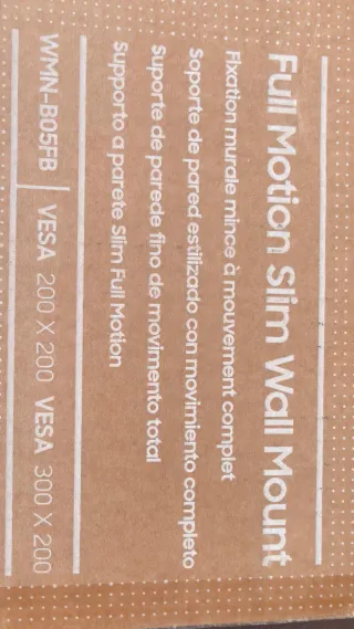 Soporte de pared Full Motion Slim Wall Mount con fijación mural completa. - Modelo: WMN-B05FB - Compatible con VESA 200 X 200 - Compatible con VESA 300 X 200 Valorado actualmente en 104 euros en amazon