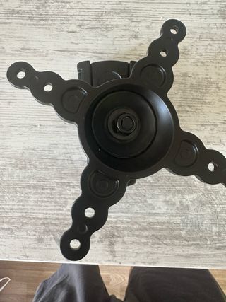 Soporte de pared para televisor de hasta 10kg. Es de color negro y parece estar en buen estado. - Incluye el soporte de pared y la pieza para la TV. - Diseño resistente y fácil de instalar.