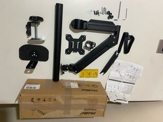 Soporte para monitor Pholiten MD800. - Compatible con monitores de 17 a 32 pulgadas. - Soporta hasta 2 kg de peso. - Patrones VESA compatibles: 75x75mm y 100x100mm. - contiene cada una de sus piezas.