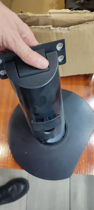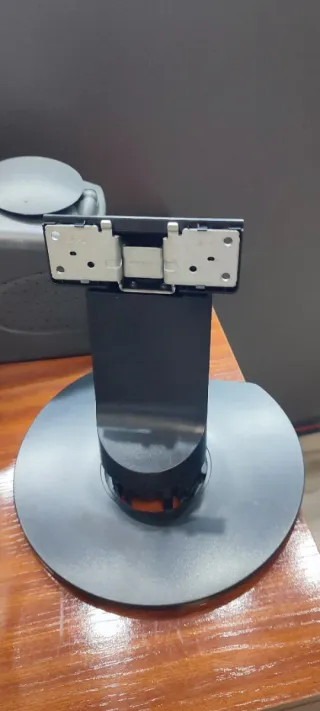 Base de soporte para monitor. - Color negro. - Diseño circular en la base. - Mecanismo de ajuste en la parte superior.