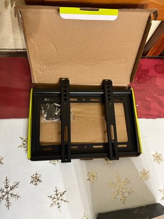Soporte para televisión grande se puede extender hacia los lados y para dentro y para afuera puede soportar un televisor de los grandes. Uno de los embellecedores creo que está partido y tiene un poquito de pintura en la parte de detrás que no se nota a penas de hay su precio. Las medidas de los agujeros para poder colgar la tele están en la última foto.