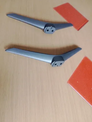 Base de pie para televisores Samsung. Fabricada en plástico negro y metal gris. - Diseño elegante y estable. - Soporte para la fijación del televisor. Dispongo de dos unidades. Mirar fotos para comprobar compatibilidad. Precio por unidad.