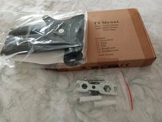 Soporte de pared para televisor, usado pero en buen estado. Se entrega tal cual se ve en las fotos. - Soporte de pared para TV. - Incluye dos piezas principales. - Presenta algo de óxido en algunas zonas.