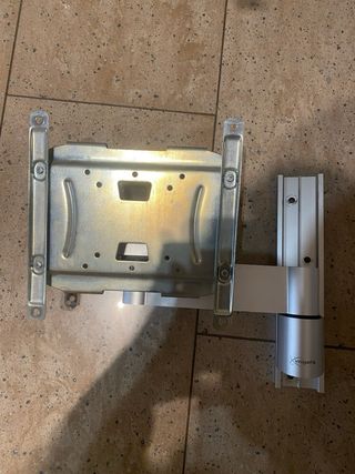 Soporte de pared para televisión con brazo articulado. Permite ajustar la posición de la pantalla. - Color negro. - Material metálico. - Incluye los tornillos que se ven en la foto *Ver medidas en fotos.
