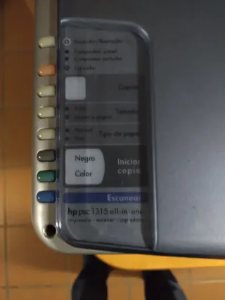 Impresora multifunción HP PSC 1315. - Funciones de impresión, escaneo y copiado. - Panel de control con botones para funciones rápidas. - Indicadores luminosos para estado y funciones.