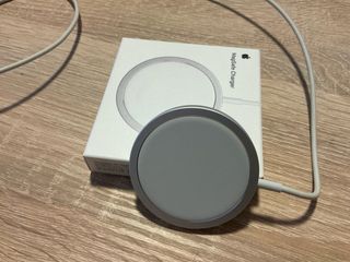 Cargador inalámbrico MagSafe de Apple con cable de 1 metro. - Diseño circular y compacto. - Cable blanco integrado.