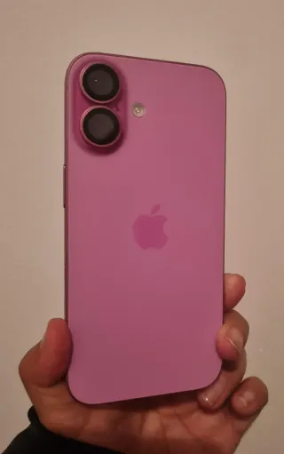 Teléfono móvil con un acabado en color rosa. - Doble cámara trasera. - Logo de Apple